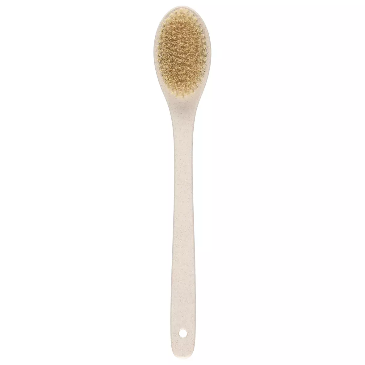 Pitkävartinen kylpyharja on erinomainen apu koko vartalon puhdistamiseen ja kuorintaan. Harjan materiaalina on vehnäkuitu ja muovisekoite.