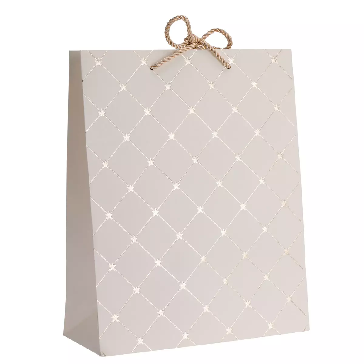 Upea, perinteisen jouluinen lahjakassi pienempien lahjojen paketointiin. Kaunis, lahjakassi on koristeltu upealla, ylellisen näköisellä kimaltavalla ruutukuvioinnilla. Ihastuttava lahjakassi on helppo tapa antaa lahja. Kimmeltävä kuvio onkin todella tyylikäs yksityiskohta lahjakassille. Upea, perinteinen lahjakassi onkin mitä mainioin valinta esimerkiksi viimeistelemään joululahjan läheiselle. Näyttävä lahjapakkaus tuo aivan taatusti iloa ja odotusta lahjan saajalle. Lahjakassi on mitoiltaan 260x100x320 mm