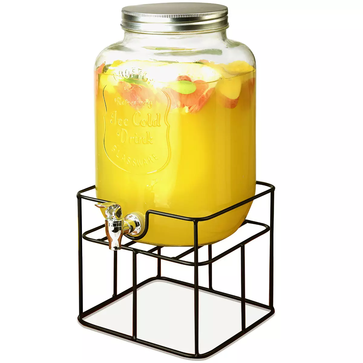 Lasinen juoma-annostelija toimii myös osana somistusta: lisää juomaan sitruunaviipaleita, minttua tai marjoja, ja astia muuntuu houkuttelevaksi juomakoristeeksi.