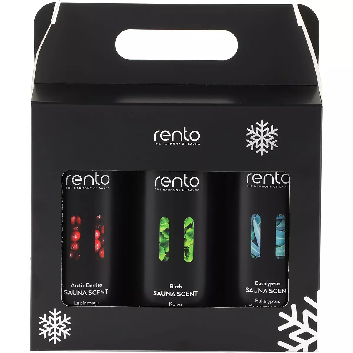 Rento löylytuoksu lahjapakkaus tuo saunailtoihin ripauksen ylellisyyttä ja rentouttavaa tunnelmaa. Kolme suosittua tuoksua – Eukalyptus, Koivu ja Lapinmarja – tekevät jokaisesta löylyhetkestä elämyksen.