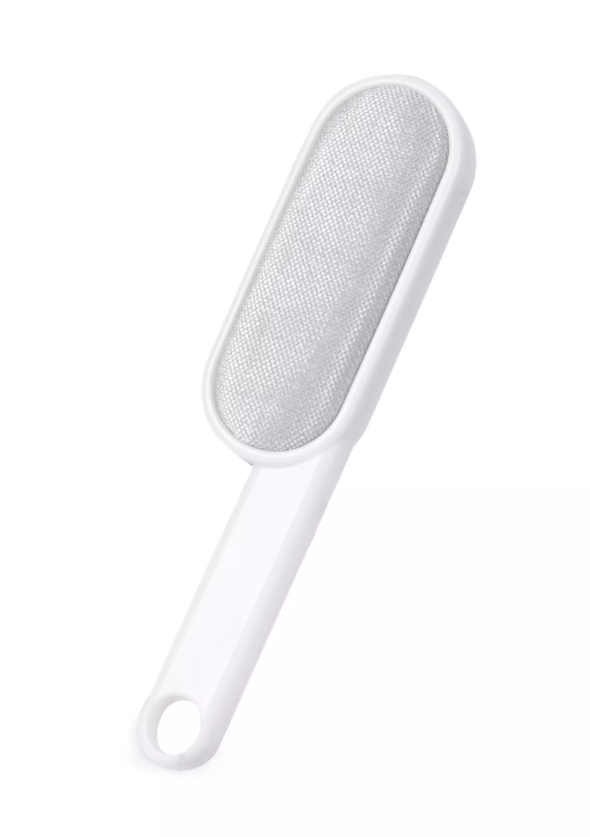 Tekstiiliharja joka poistaa irtolian ja roskan tekstiileistä sekä vaatteilta.