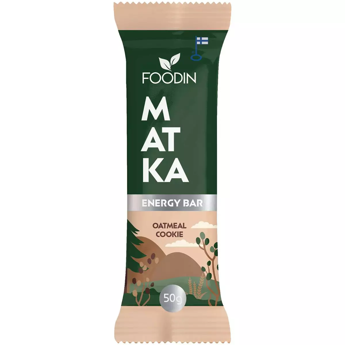 Foodin MATKA Energy Bar Oatmeal Cookie -patukassa kauran ja mausteiden herkullinen yhdistelmä tuo mieleen lapsuusajan kaurakeksit. Gluteeniton puhdaskaura ja rapeat pähkinät tarjoavat pitkäkestoista energiaa ilman lisättyä sokeria tai lisäaineita.