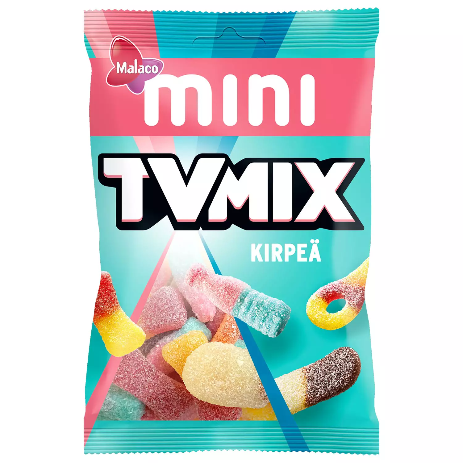 Mini TV Mix kirpeä -makeispussi on ihastuttava sekoitus erilaisia kirpeitä hedelmäkarkkeja. Pussi on jokaisen kirpeiden karkkien ystävän ykkösvalinta. Kirpeät ja herkulliset makeiset taltuttavat makeanhimon nopeasti.