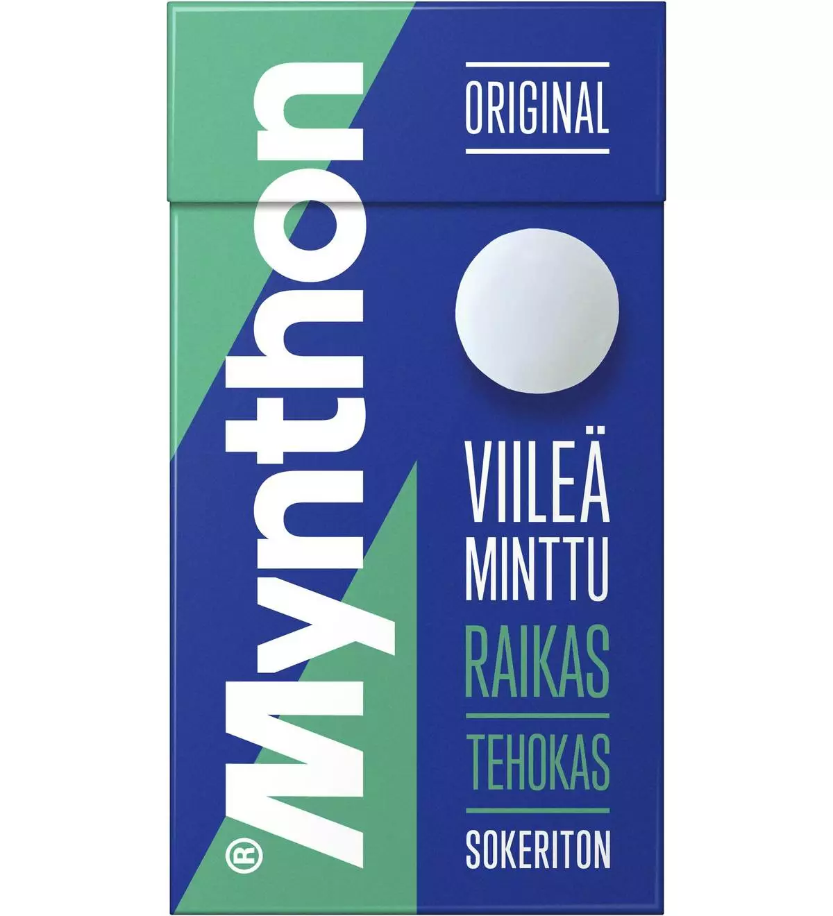 Mynthon Original Viileä Minttu -kurkkupastillit maistuvat viileältä mintulta, jonka raikas maku syntyy aniksen ja mentholin yhdistelmästä. Pastillit ovat sokerittomia. Kurkkupastillit raikastavat tehokkaasti mynthonmaiseen tyyliin.