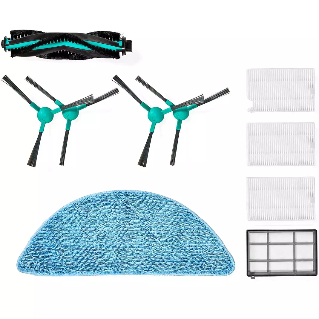 Nedis WIFIVCL001CBK robotti-imurin varaosasarja, johon sisältyy suodattimet, harjat ja mopit. Robotti-imurin suodattimet ja harjat sekä puhdistusliinat tulisi vaihtaa säännöllisesti, jotta imurin imukyky ja suorituskyky säilyvät ennallaan. Sopiva vaihtoväli on noin kuusi kuukautta, mikäli imuri on päivittäisessä käytössä.