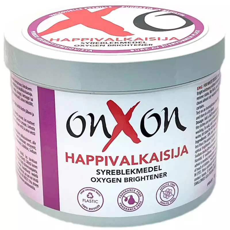 OnXOn happivalkaisija on tehokas ja hellävarainen ratkaisu valkoisten tekstiilien puhdistukseen. Se kirkastaa pyykin hohtavan valkoiseksi ilman klooria ja poistaa vaikeatkin tahrat turvallisesti.