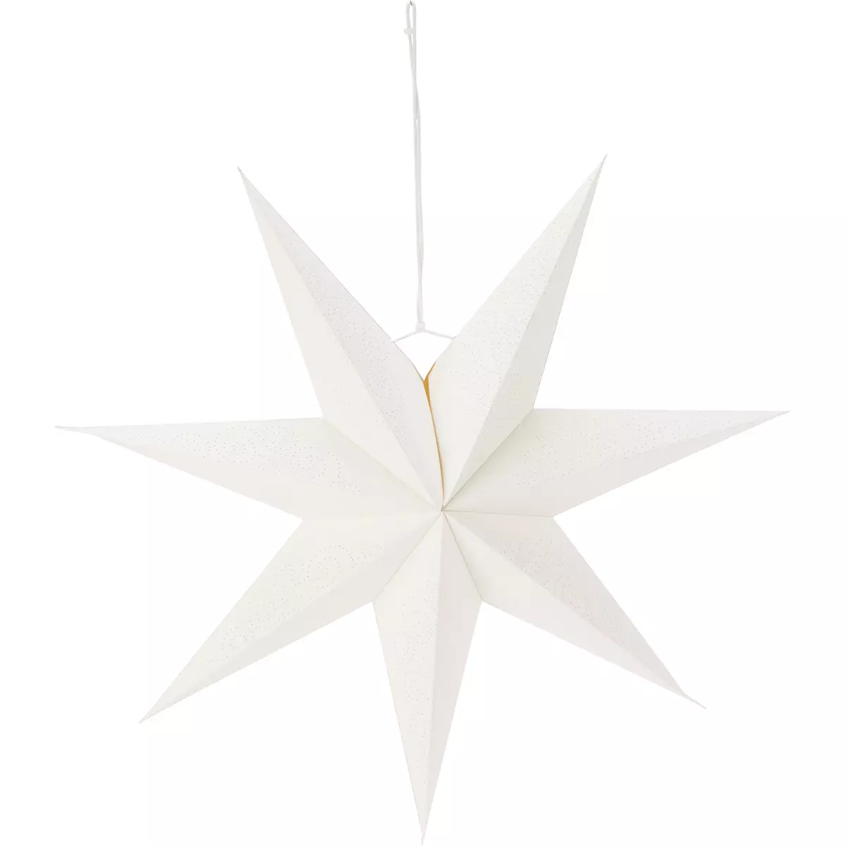 Tyylikäs ja tunnelmallinen paperitähti luo kotiin lämmintä joulun hehkua. 60 cm kokoinen, 7-sakarainen koriste on näyttävä yksityiskohta ikkunoissa, olohuoneessa tai joulupöydän yläpuolella. Valkea väri tuo valoa ja keveyttä talven pimeyteen.