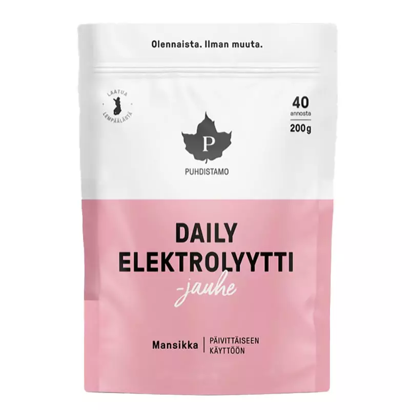 Daily Mansikka on suunniteltu päivittäiseen käyttöön, ei pelkästään liikunnan jälkeen. Jauhe sisältää vähemmän natriumia ja enemmän kaliumia sekä magnesiumia kuin monet muut elektrolyyttituotteet, minkä ansiosta se sopii erinomaisesti myös kevyempiin arjen hetkiin, kuten työpäivän aikana tai aamulla herätessä.