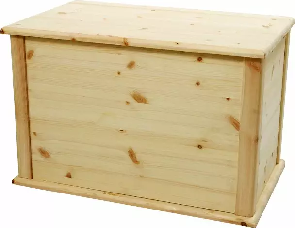 Vahva sekä tukeva kotimainen männystä valmistettu kannellinen puulaatikko -penkki.
