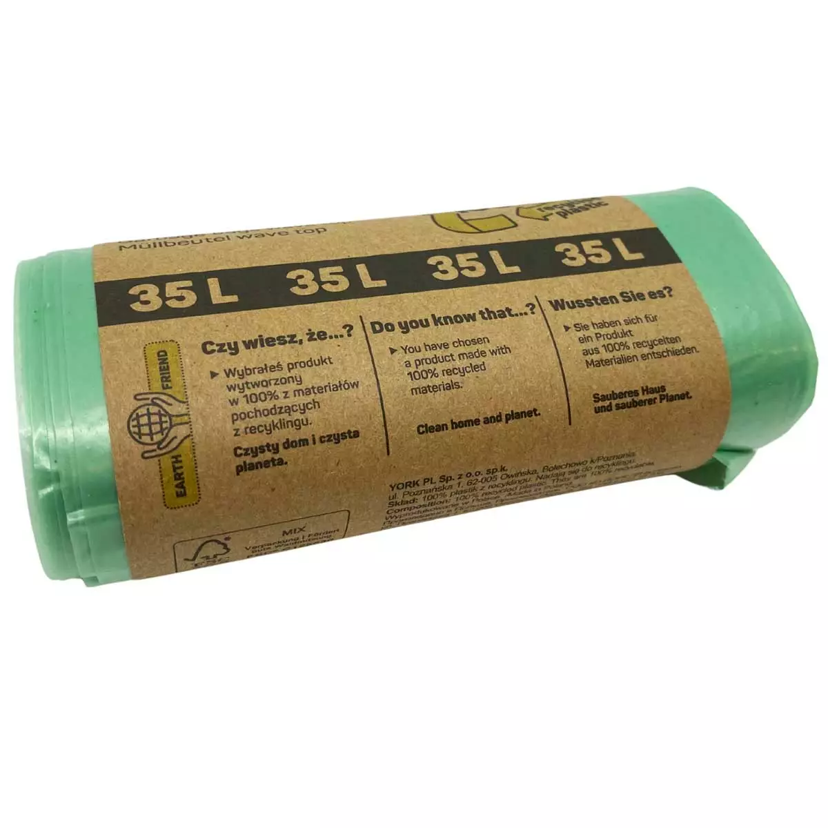 Jätepussit on valmistettu ympäristöä säästävästä kierrätysmateriaalista, joten 35 litran roskapussit tarjoavat erinomaisen kestävyyden ilman muovijätettä lisäävää vaikutusta. Vahva rakenne estää repeämistä ja pitää jäteastian siistinä.
