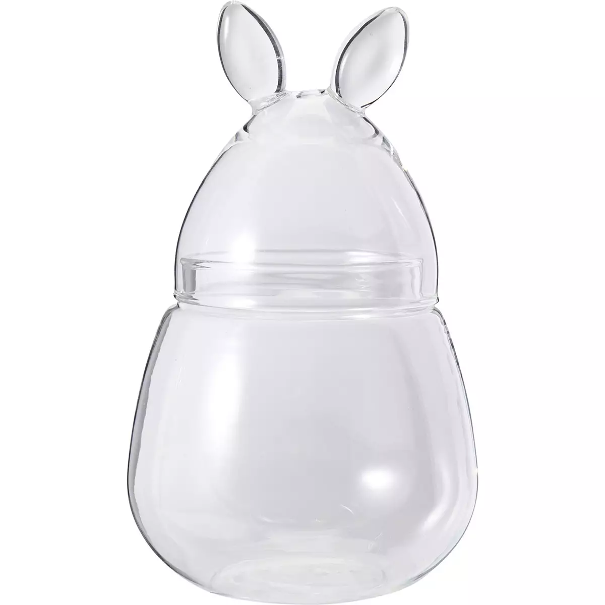 Kun etsit säilytysastiaa, joka toimii samalla koristeena, tämä pupun muotoinen lasipurkki tarjoaa siihen selkeän ja persoonallisen vaihtoehdon.