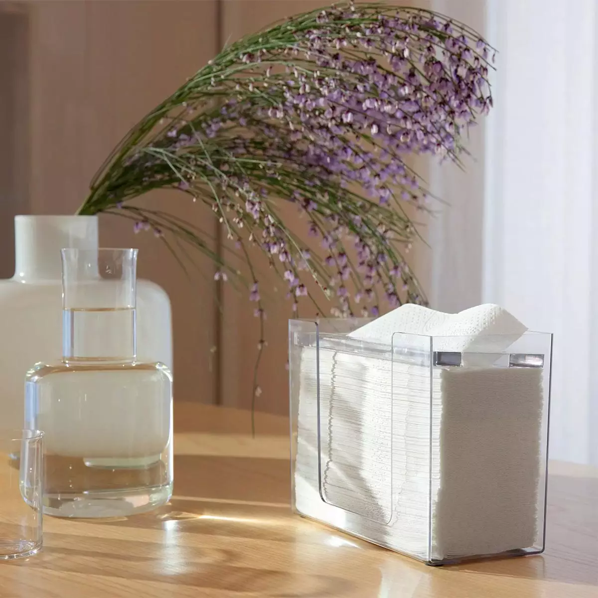 Tyylikäs talouspaperiannostelija pitää talouspaperin siististi esillä ja aina käden ulottuvissa. Käytännöllinen talouspaperiteline helpottaa talouspaerin ottamista sekä mahdollistaa oikean paperimäärän ulosvetämisen telineestä. Pöydälle asetettavasta käsipyyhetelineestä saadaan helposti napattua talauspaperia ilman apukäsiä ja kätevästä telineestä saadaan talouspaperia, vaikka vain yksi käsi olisi käytettävissä. Näppärän kokoiseen paperiarkkiannostelijaan mahtuu paketillinen Serla Handy tai Lambi Home Towel talouspaeriarkkeja. Kätevät ja helposti varastoitavat talouspaperiarkkipakkaukset sisältävät jopa kahden talouspaperirullan verran talouspaperia. Talouspaperiarkit ja käsipyyheteline helpottavat muun muassa ruoanlaittoa, käsien kuivaamista ja keittiön siivoamista.