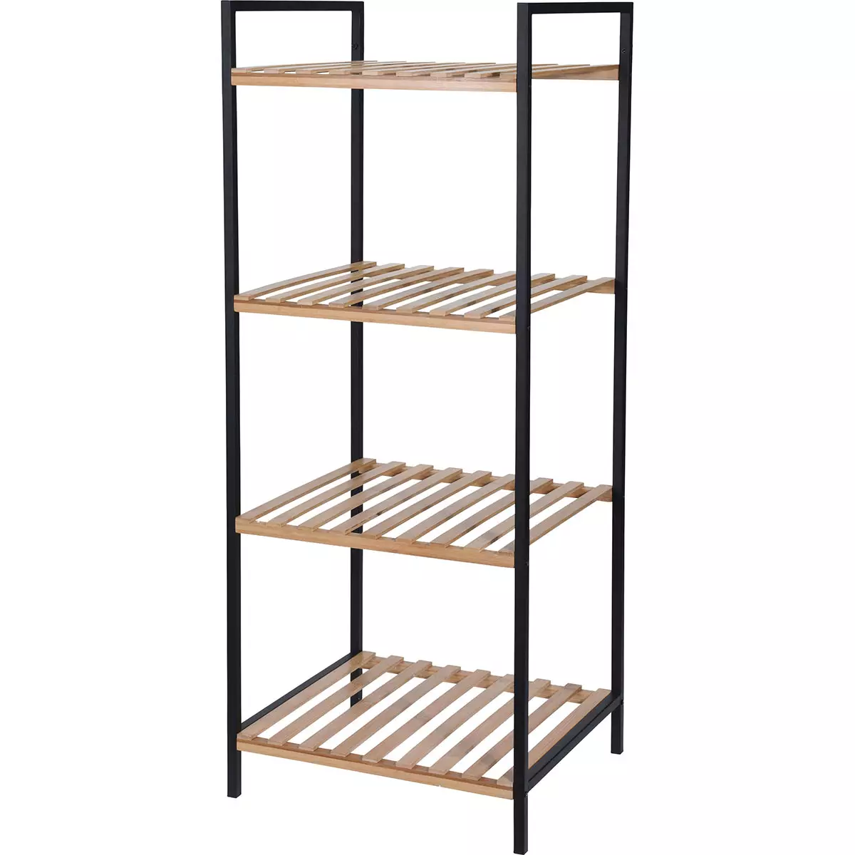 Kylpyhuoneen hyllykkö Korfu on sekä sistustuksellinen että käytännöllinen ratkaisu niin kylpytiloihin kuin osaksi kodin muuta sisustusta. Bambusta ja metallista valmistettu ilmava 4-tasoinen hylly tuo mukavasti säilytystilaa kodin tiloihin. 4-kerroksinen hyllykkö on myös tyylikäs vaihtoehto kasveille ja kukille esimerkiksi lasitetulla parvekkeella. Bambu hyllykkö toimii myös kodin muissa tiloissa, kuten makuuhuoneessa tai olohuoneessa kirjoille, pienille säilytyslaatikoille tai koriste-esineille.