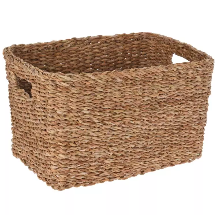 Punottu, suorakulmainen sisustuskori on valmistettu luonnonmateriaaleista, mikä tuo sisustukseen lämmintä tunnelmaa. Meriheinä säilytyskori on mitoiltaan 31cm x 23cm x 10cm. Samaa sarjaa on saatavana myös kahdessa isommassa koossa.