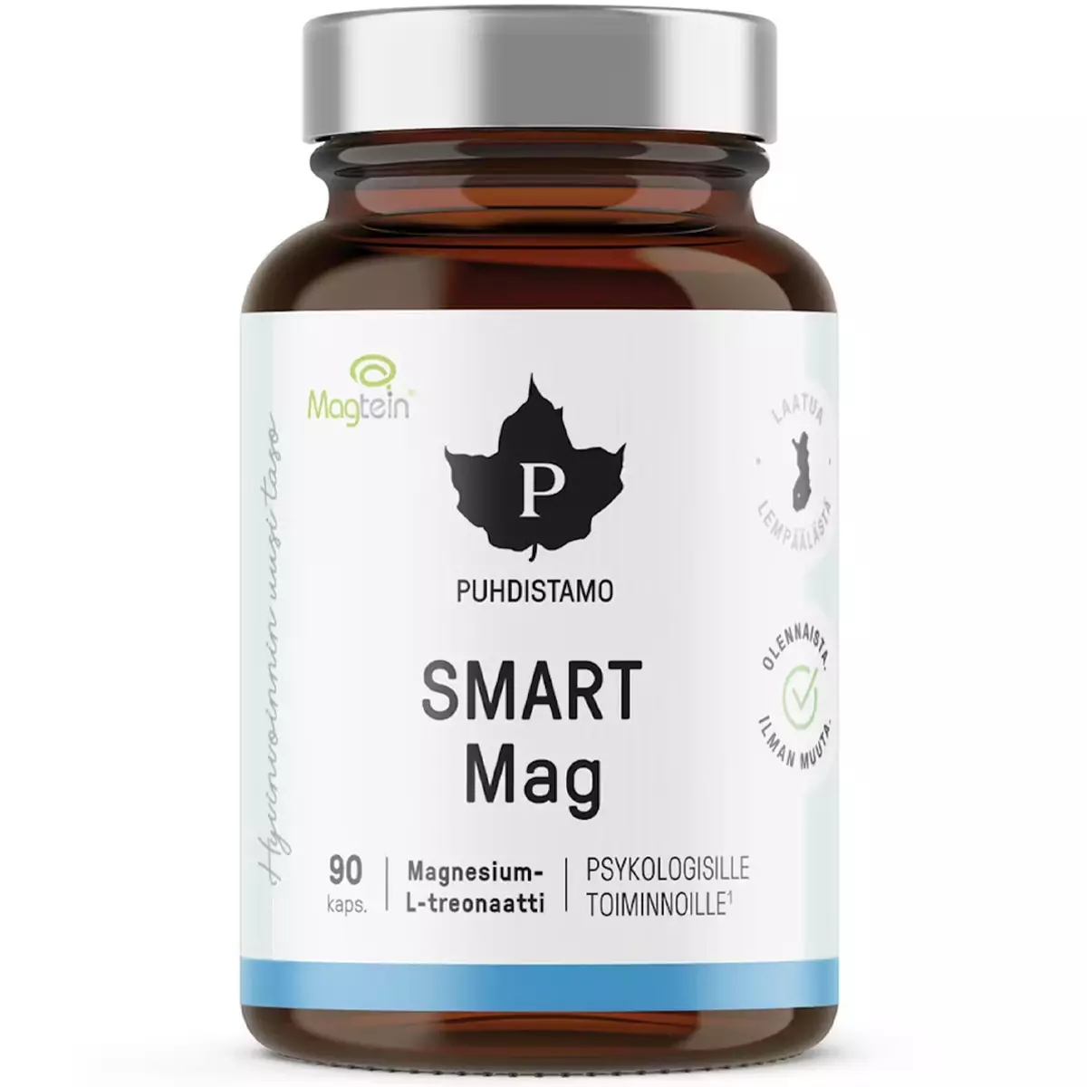 Smart Mag on magnesium-L-treonaattia sisältävä ravintolisä, joka on suunniteltu tukemaan hermoston normaalia toimintaa ja psykologisia toimintoja osana päivittäistä hyvinvointia. Tuote sisältää patentoitua Magtein®-raaka-ainetta sekä L-glysiiniä, ja se sopii erityisesti kognitiivista ja henkistä jaksamista tukevaksi lisäravinteeksi.