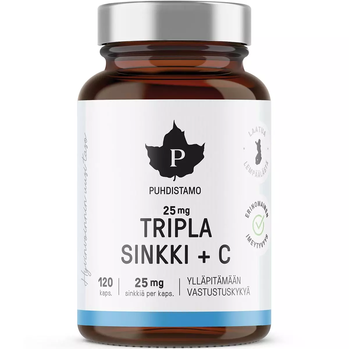 Puhdistamon Tripla Sinkki + C -kapselit on valmistettu pitkän tutkimus- ja tuotekehitystyön tuloksena. Valmistuksessa on haluttu kiinnittää erityistä huomiota sinkkivalmisteen imeytymiseen, mikä on yksi haastavimmista asioista sinkkitablettien kohdalla.