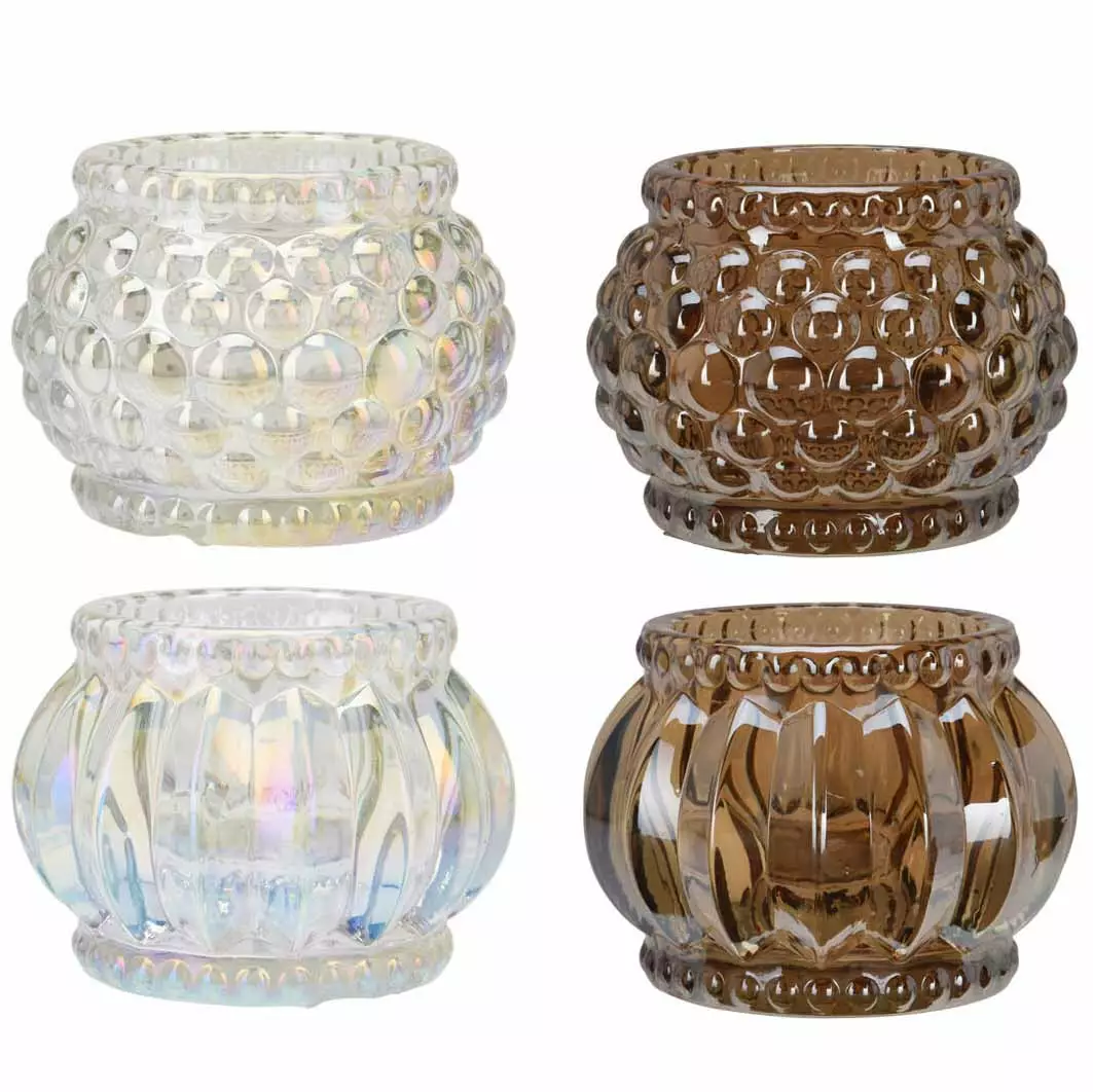 Vaalea posliininen kynttiläkippo tuikulle. Kennomainen kuviointi ja kultainen reunus tuovat hillittyä valoa ja tyyliä sisustukseen.