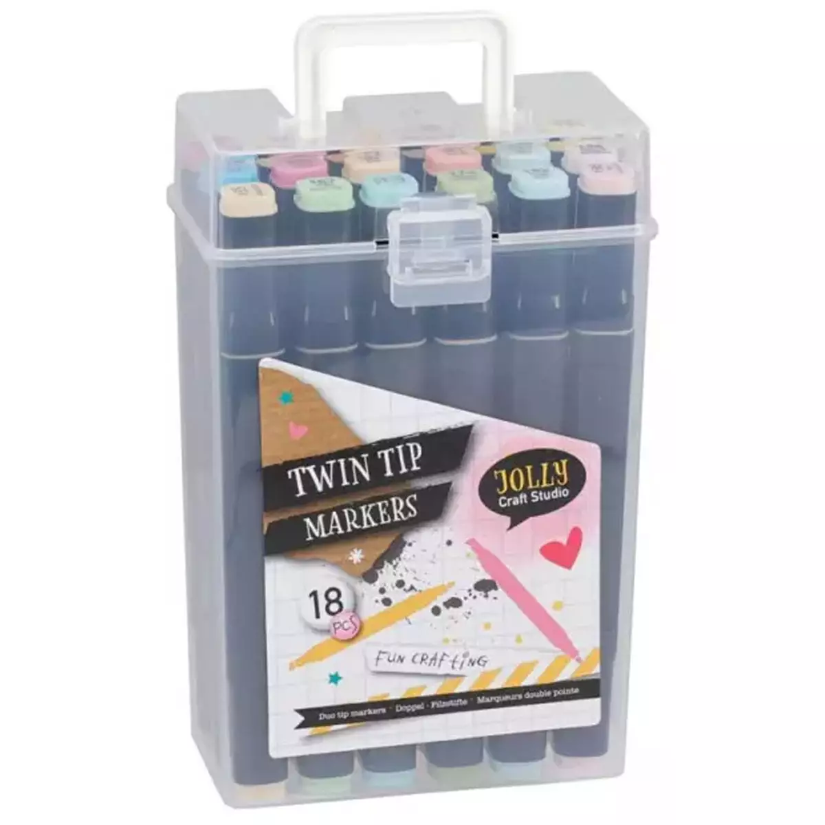 Käytön jälkeen tussit pysyvät kauniisti järjestyksessä kannellisen säilytysrasian ansiosta. Säilytysrasian ansiosta tussit on myös helppo napata mukaan esimerkiksi matkalle.