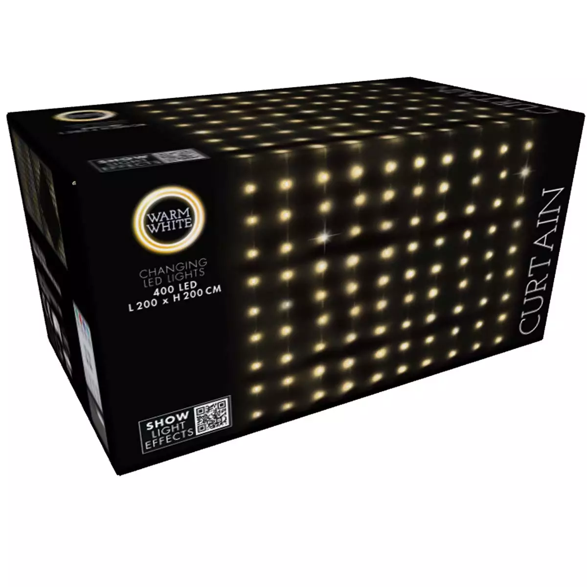 Valoverkossa on 400 kpl digitaalista lämpimänvalkoista led valoa. Kirkkaan PVC-johdon pituus on 500 cm. Valoverkon leveys on 200 cm ja korkeus 200 cm, joten valoverho sopii täydellisesti ikkunan eteen. Valoverhossa on 20 nauhaa, joiden välinen etäisyys on 10 cm. Jokaisessa nauhassa on 20 led valoa. Valoverkon muuntaja on IP44 5V/10W. Pakkaukseen sisältyy myös kaukosäädin (paristo CR2025), joilla valoverhojen valoja tai ajastusta on helppo säätää.