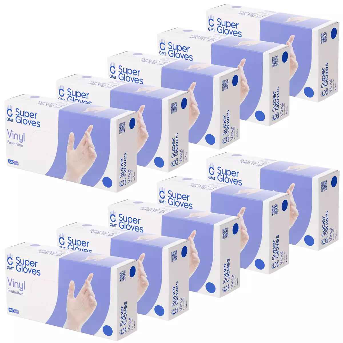 Riittoisassa tukkulaatikossa on kymmenen kappaletta 100kpl pakkauksia. Tukkulaatikossa on yhteensä 1000 kpl työhanskoja. Vinyylikäsineessä on puuteriton sisäpinta. Käsine on kertakäyttöinen, ei steriili. Vinyylikäsine sisältää PVC:ta. Käsine on MDR 2017/745 luokka 1.