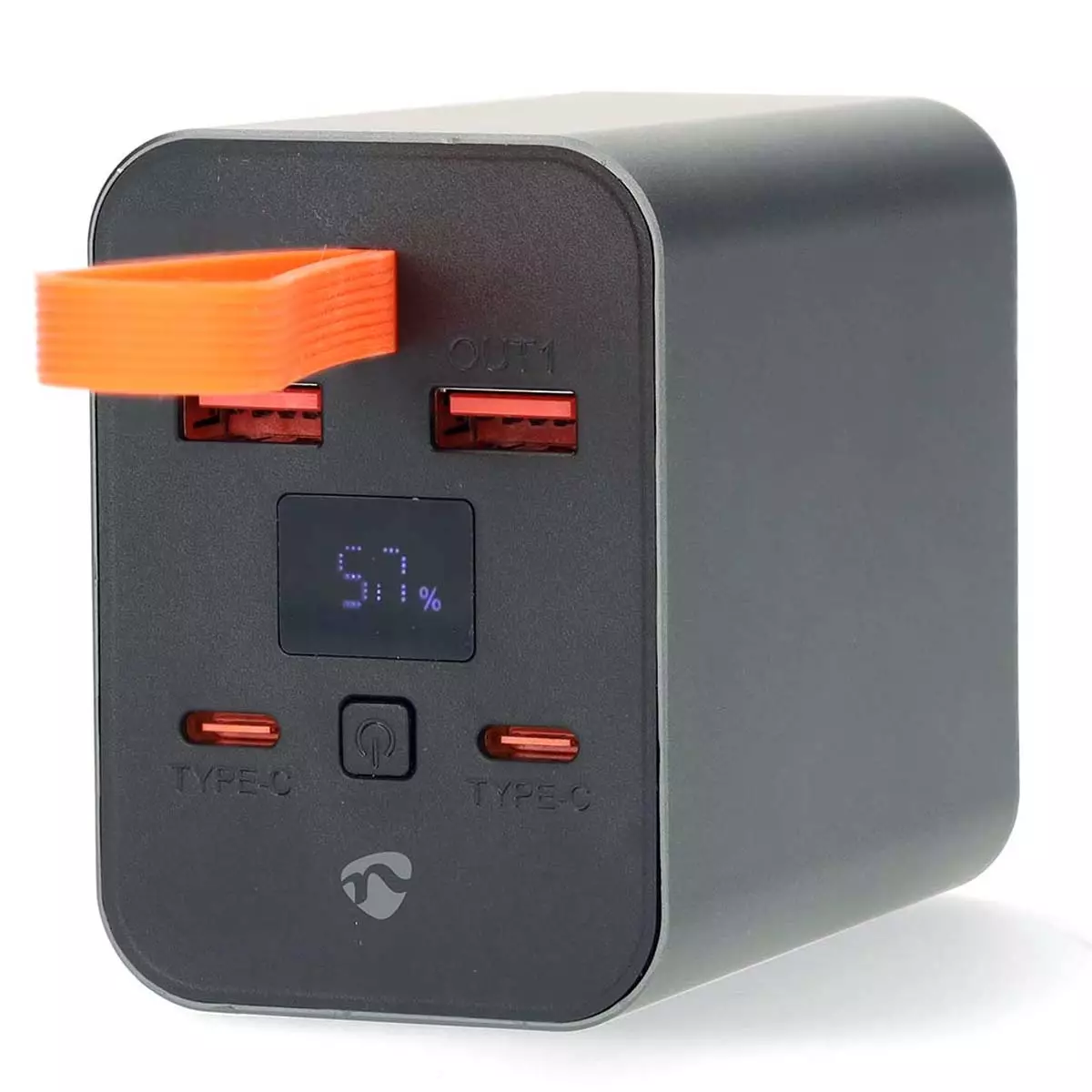 Virtapankissa on kaksi tehokasta USB C porttia (PD 100 W) sekä kaksi USB A porttia (QC3.0 18 W). Tämä mahdollistaa jopa 4x nopeamman latauksen verrattuna perinteisiin virtapankkeihin. Myös itse virtapankin lataus on erittäin nopeaa USB C sisääntulon ansiosta.