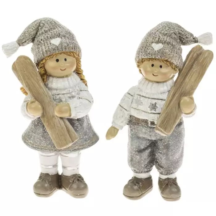 Tämä ihastuttava Weiste-joulukoriste tuo kotiin perinteistä ja lempeää joulutunnelmaa. Suloinen poika- tai tyttöhahmo kantaa ruskeita suksia ja on pukeutunut pehmeän sävyisiin harmaan ja valkoisen yhdistelmiin - kuin suoraan talvisesta satumaailmasta.