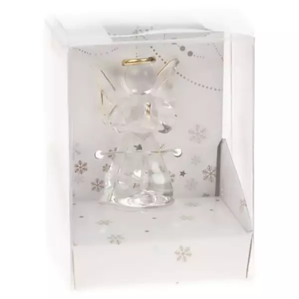 Lasienkeli on valmistettu laadukkaasta lasista ja viimeistelty kultaisilla siivillä ja sädekehällä. Hieno viimeistely tekee enkelistä arvokkaan yksityiskohdan joulukoristeluun ja toimitukseen sisältyvä rasia säilyttää sen kauniina vuodesta toiseen.