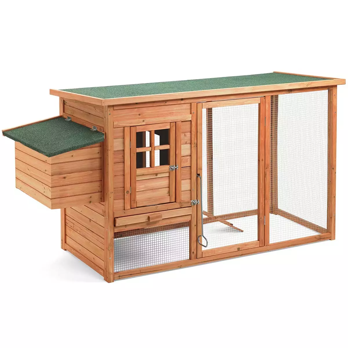 Suojaisa kanakoppi on varusteltu huopakatolla, joka suojaa eläimiä niin auringonpaisteelta kuin sateeltakin. Visuaalisesti kanala on tyylikäs vaihtoehto pihapiiriin ja puu on mahdollista myös käsitellä tai maalata esimerkiksi talon kanssa yhteneväksi. Monipuolinen kanakoppi sopii hyvin myös kaneille tai muille pieneläimille.