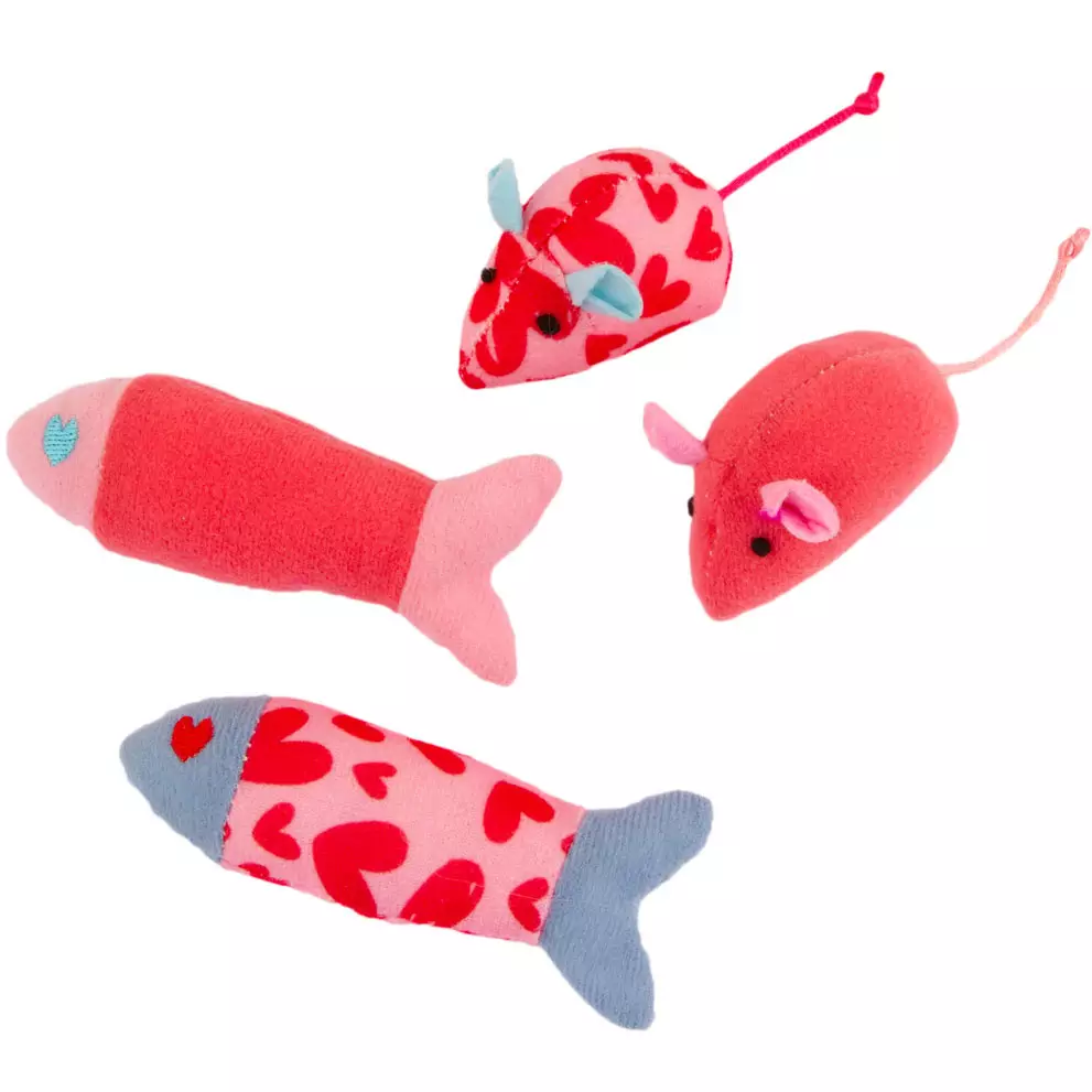 Best Friend Teeny lajitelma sisältää suloisia kissan leluja, joihin on kätketty kuivattua kissanminttua. Teeny lajitelmaan kuuluu Hiiret ja Kalat, joissa molemmissa on söpöt pinkit sydänkuosit. Pakkaus sisältää 2 kpl kissan pehmoleluja. Tarjoa kissalle päivittäin erilaisia virikkeitä, jolloin kissa voi leikkiä myös omatoimisesti. Kissanminttu herättää kissassa mielenkiintoa, joten nämä lelut houkuttavat hyvin monenikäisiä kissoja leikkimään ja saalistamaan.
