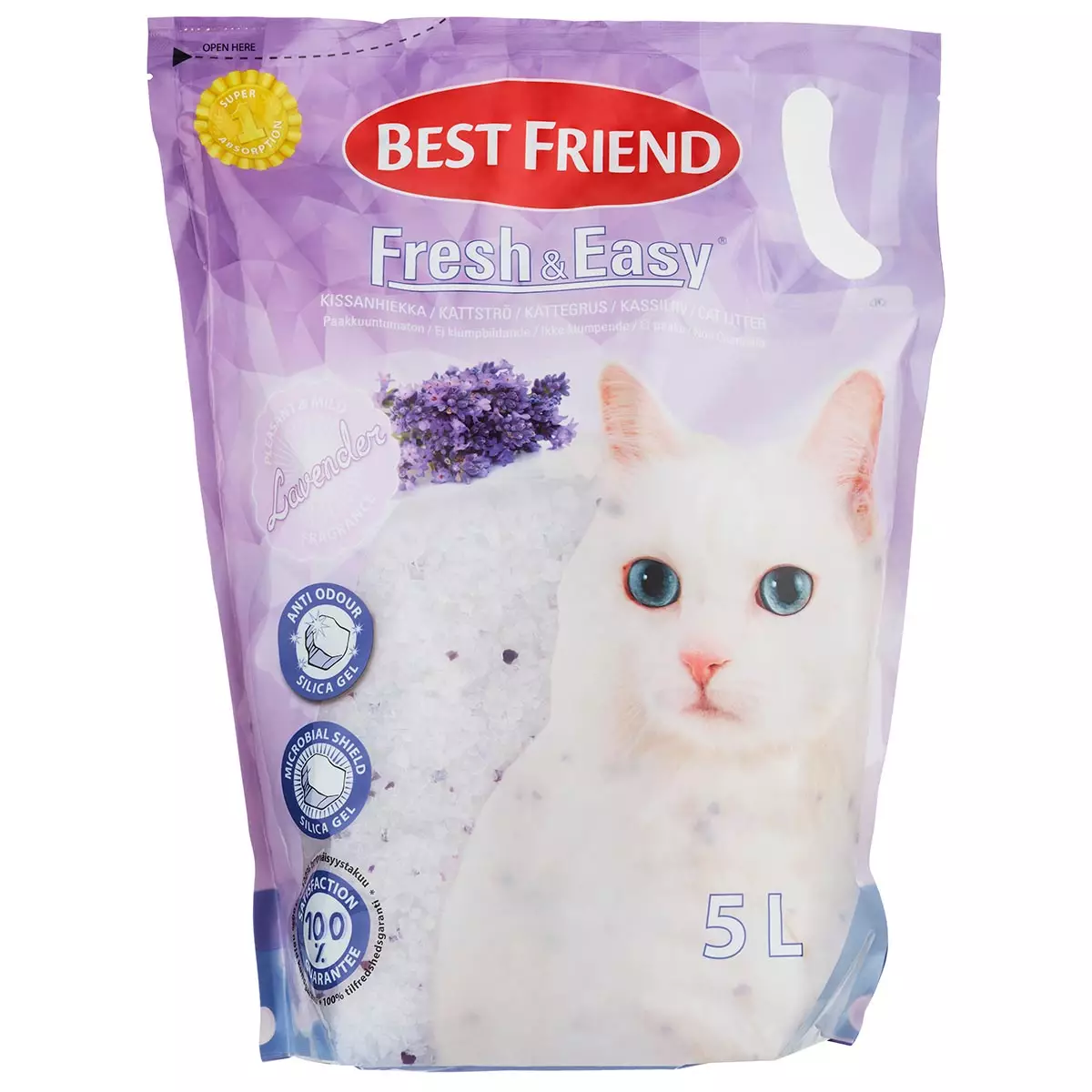 Silikaattinen kissanhiekka Fresh & Easy on ihana laventelintuoksuinen ja pölytön kissanhiekka. Riittoisa 5 litran silikaattinen kissanhiekka kestää käytössä pitkään ja huokoinen silikageeli imee nestettä ja sitoo itseensä bakteereja ja hajuja nopeasti. Kevyt ja pölytön kissanhiekka sopii yleensä hyvin myös nirsoille kissoille, jotka ovat tarkkoja kissanhiekasta.
