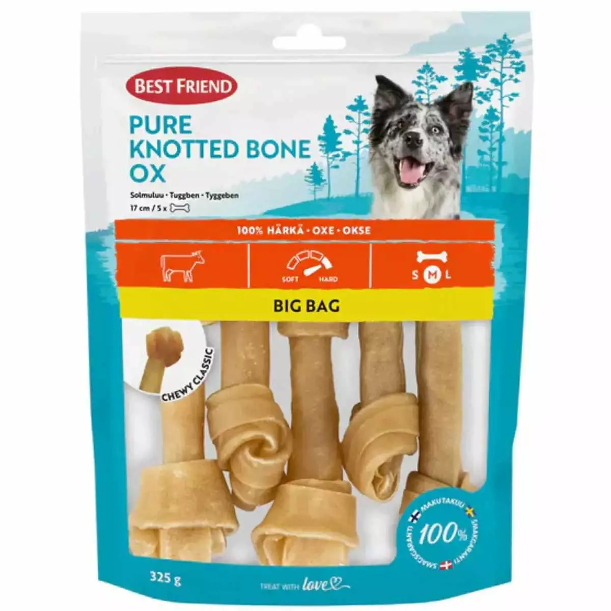 Best Friend -solmuluu tarjoaa koirallesi tekemistä, aktivoi luonnollista puruviettiä ja samalla tukee suun terveyttä. Herkku joka tarjoaa huvin ja hyödyn samalla kertaa.