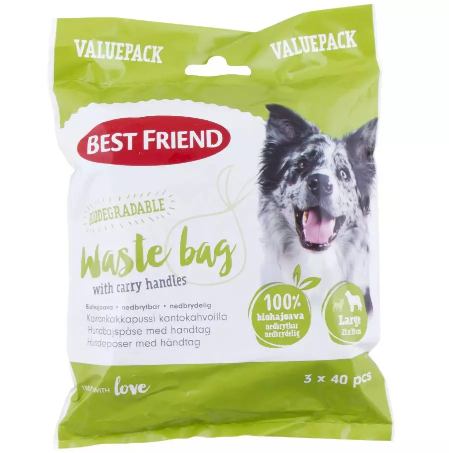 KOIRAN KAKKAPUSSI L 3x40kpl Maatuva koirankakkapussi kantokahvoilla. Kakkapussi Best Friend Gear on 100% maatuvia kakkapusseja. Siivouspussin materiaali on PE muovi. Noin 2% TDPA (metallisuoloja)... Lue lisää