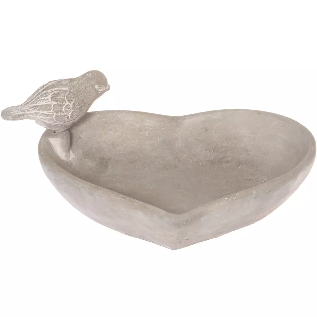 Sementistä valmistettu sydämenmuotoinen lintukylpy yhdistää kauniin muotoilun ja käytännöllisyyden. Harmaan betonin rouhea pinta tuo luonnonläheistä tyyliä puutarhaan, parvekkeelle tai terassille.
