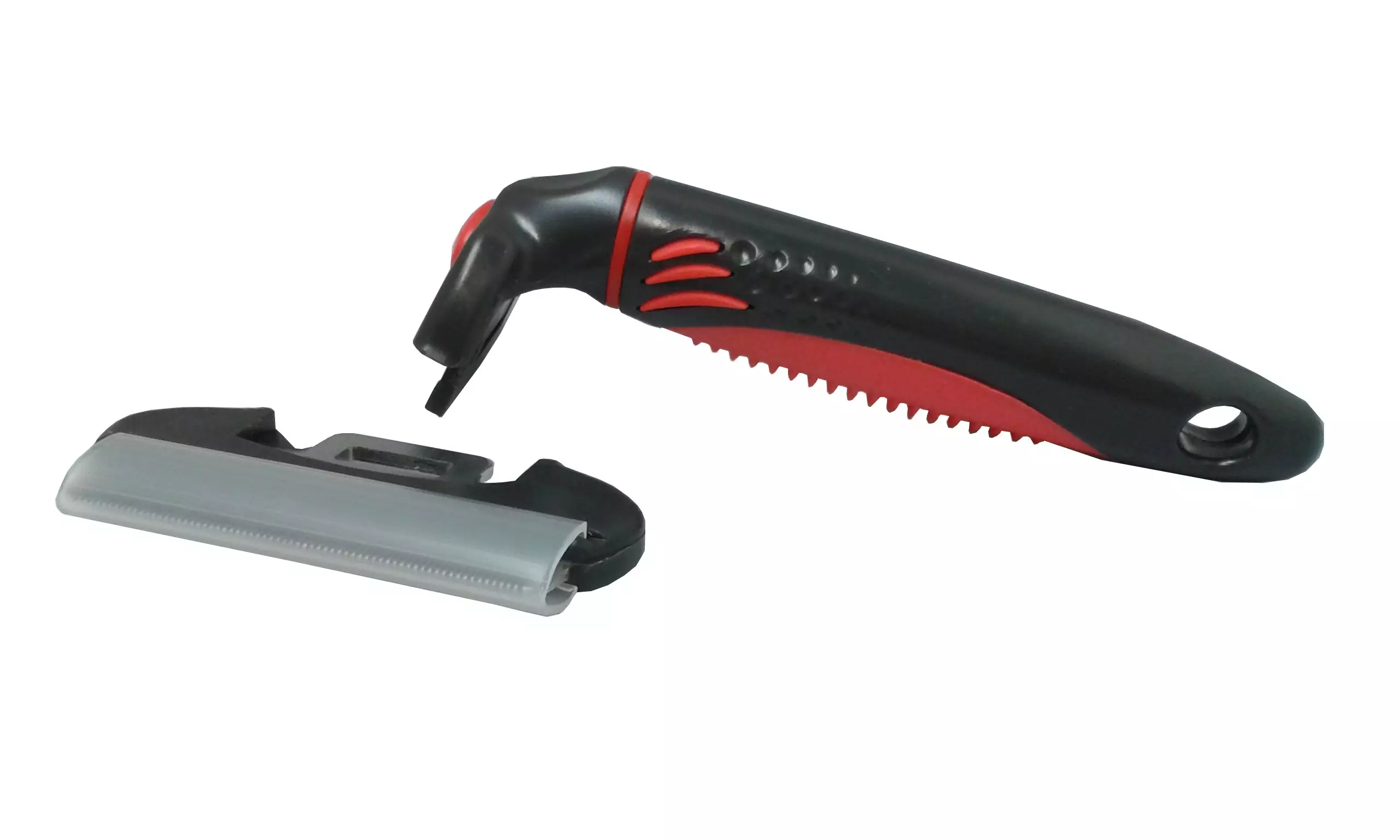 - Kestävä, ruostumattomasta teräksestä valmisttettu terä on suojattu muovikuorella