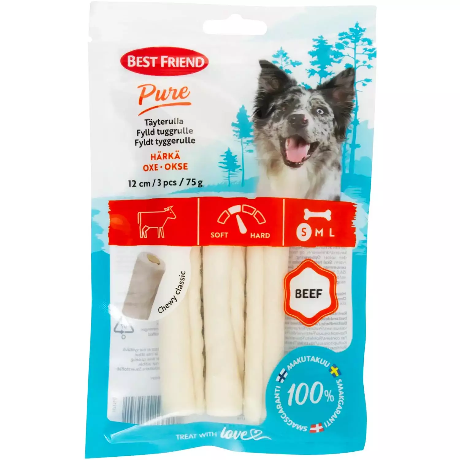Täyterulla Pure härkä 12cm 3kpl 75g Best Friend Herkullinen pururulla koirille