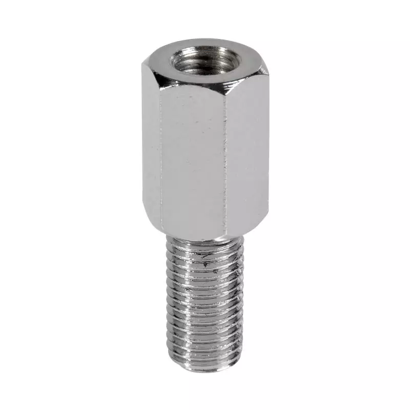 Helppokäyttöinen adapteri peilille. Adapterin peilinkiinnitys kierre on M10 oikeanpuoleisella kierteellä, adapterin ulkokierre on M8 vasemmanpuoleisella kierteellä.