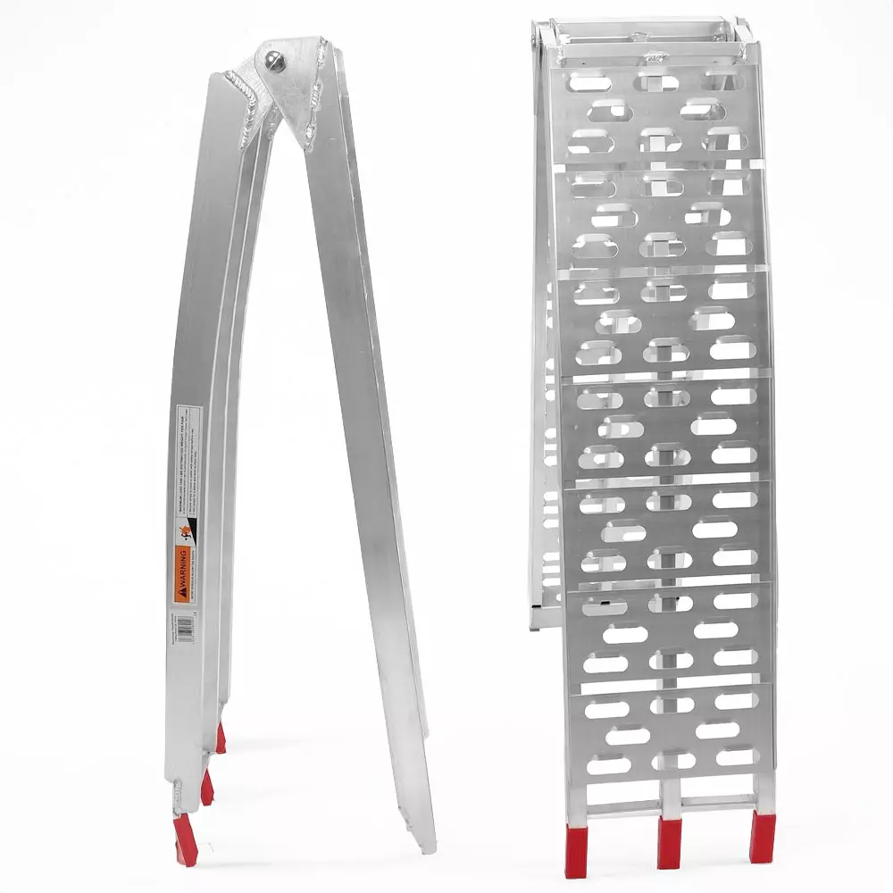 Taitettava alumiininen ajoramppipari sopii käyttäjille, jotka tarvitsevat kestävän ja helposti käsiteltävän ratkaisun ajoneuvojen ja raskaiden tavaroiden siirtoon eri ympäristöissä.