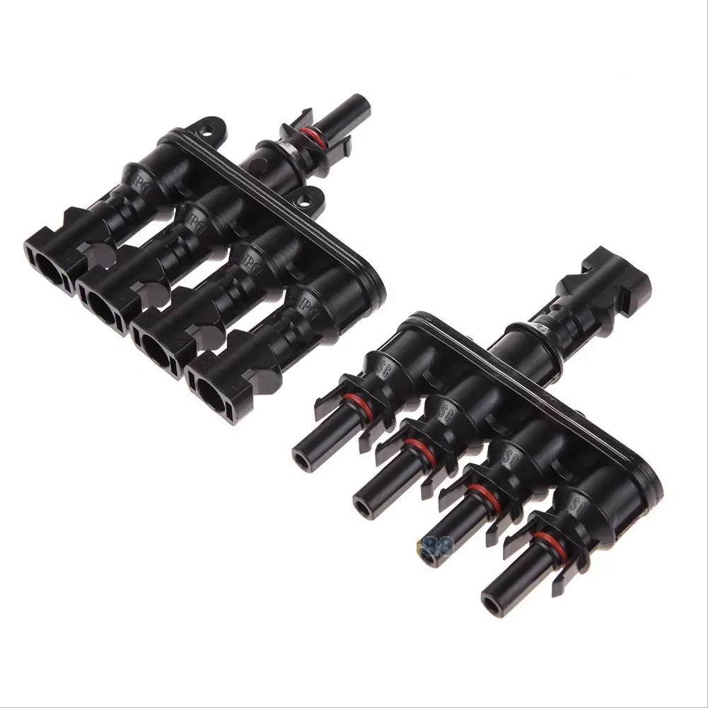 AURINKOPANEELI LIITINPARI 4 in 1 - Yhdistä 4 paneelia samaan johtoon MC4 Haaroitus liitin neljän aurinkopaneelin välille. Pakkaus sisältää yhden parin / kaksi 4in1-liitintä. Kytke neljä... Lue lisää