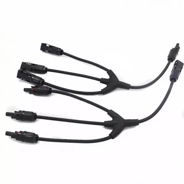Haaroitusjohto kolmen paneelin välille, Liitinpari, sisältää 3kpl Y-haaroja. Tämän avulla saa kytkettyä kolme aurinkopaneelia yhteen johtoon. Aurinkopaneelin kaapelissa on yleisin mc4 pikaliitin joka sopii useimpiin aurinkopaneeleihin, aurinkopaneelien johtoihin sekä useaan invertteriin suoraan. Mc4 pikaliitin on helppokäyttää ja se on laadukkaasti kosteussuojattu.