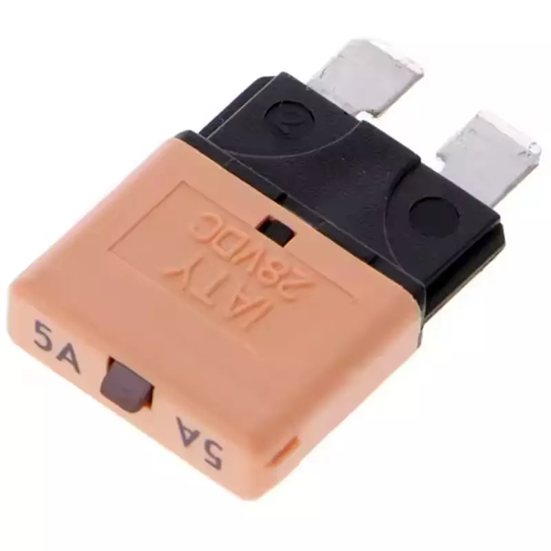 Resetoitava automaattisulake 5 A on blade-tyyppinen virtasuojakomponentti joka sopii ajoneuvojen ja veneiden sähköjärjestelmiin. Se suojaa piirejä ylikuormitukselta ja oikosuluilta, ja voidaan palauttaa käyttöön manuaalisesti ilman sulakkeen vaihtoa.