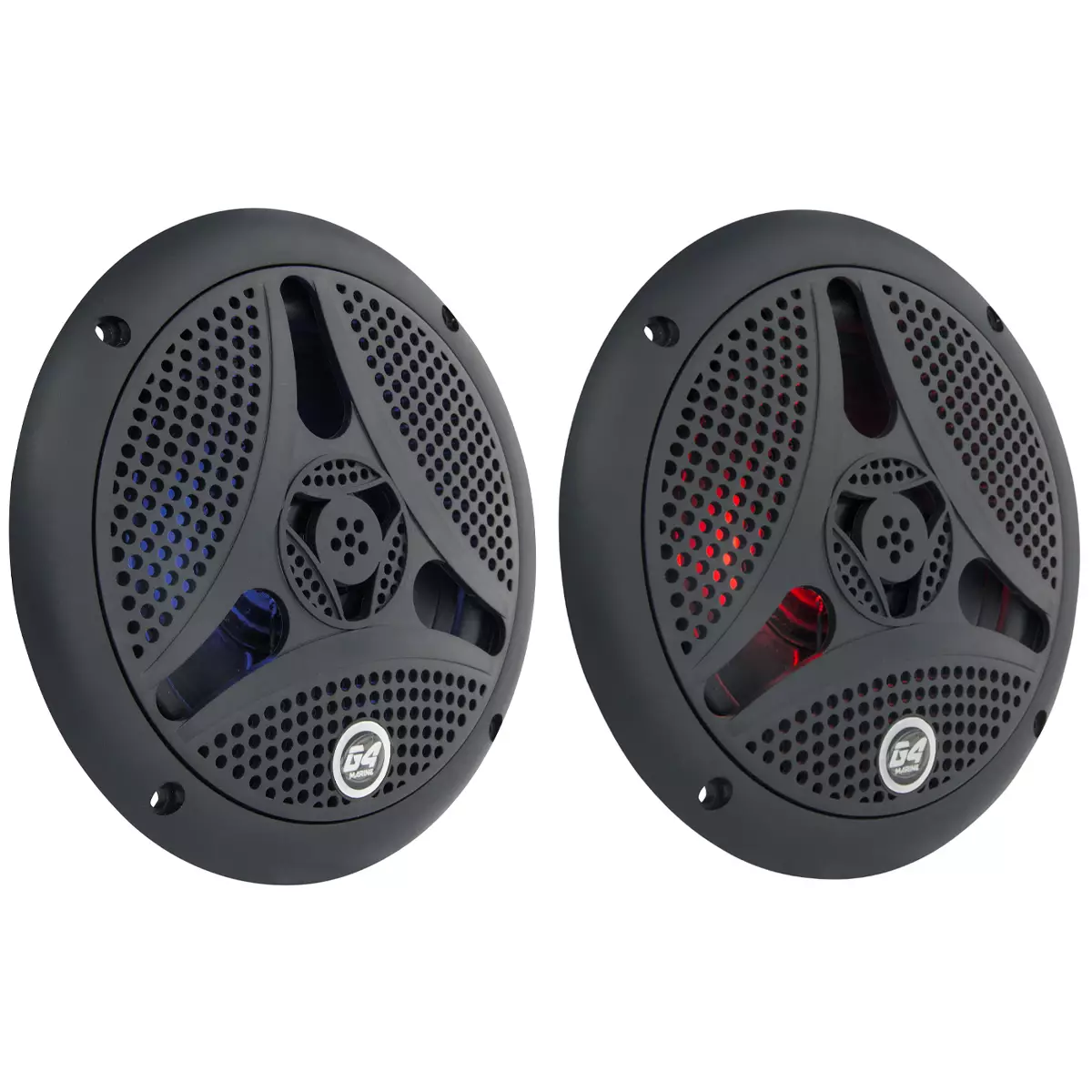 Bluetooth kaiuttimet on täysin suojattu kosteudelta ja korroosiolta. Kaiuttimet on helppo asentaa mihin tahansa kohteeseen, esimerkiksi autoon ja veneeseen. Kaiuttimien sisällä olevat led-valot luovat tunnelmaa ohjaamoon. Helppo musiikin ohjaus suoraan puhelimesta.