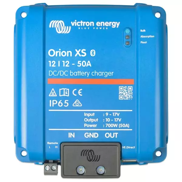 Victron Orion XS 12/12-50A DC-DC -laturi lataa 12 V apuakkua ajon aikana hallitusti ja tehokkaasti kaksoisakkujärjestelmissä. Säädettävä latausvirta, jopa 98,5 % hyötysuhde ja Bluetooth-ohjaus tekevät siitä toimivan ratkaisun retkeilyautoihin, veneisiin ja muihin liikkuviin sähköjärjestelmiin.