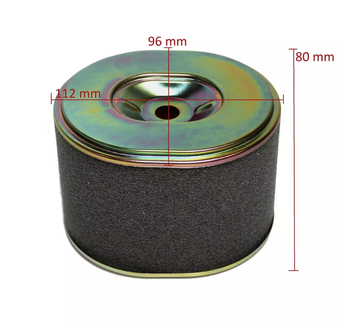 Ilmansuodattimen patruuna 9 hv GX270-tyyppisiin irtomoottoreihin. Korkeus 80 mm, halkaisija 96 x 112 mm. Sopii Hondatype- ja Briggs-tyyppisiin moottoreihin.