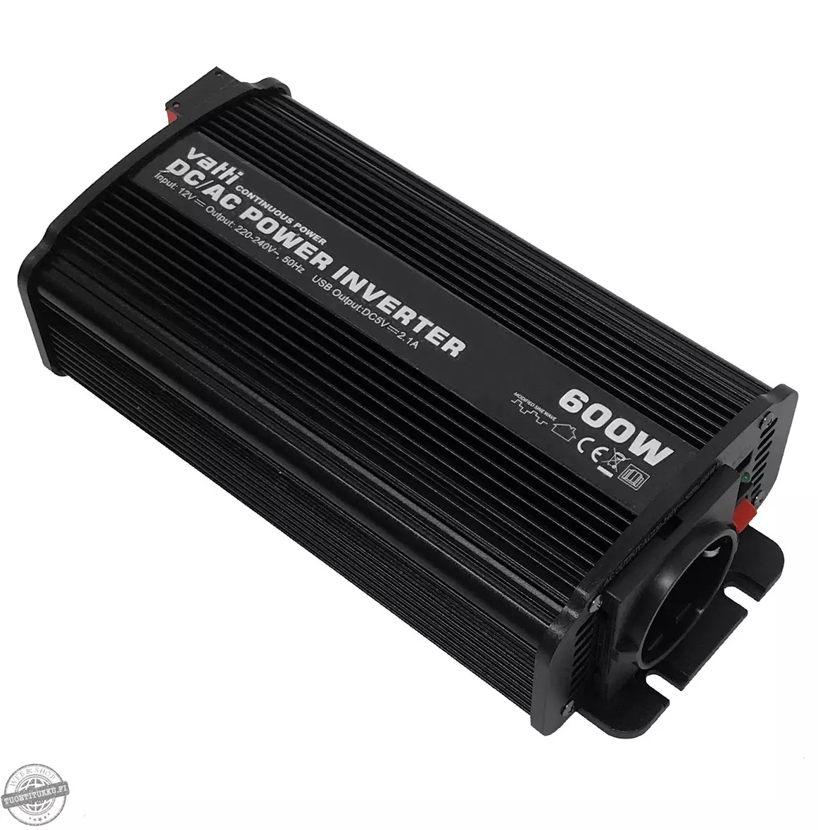 Tehokkaalla DC/AC 600W invertterillä voit muuttaa näppärästi akusta saatavan virran (DC) vaihtovirraksi (AC). Invertteri soveltuu 230V sähkölaitteille mm. mökki-, matkailuauto-, auto- ja kuorma-autokäyttöön.