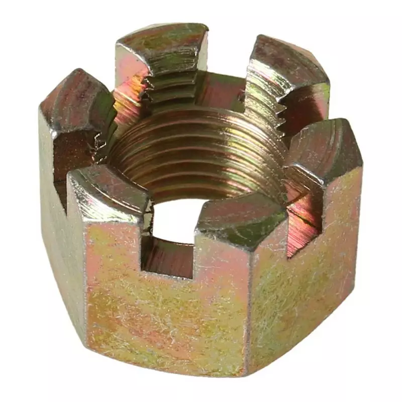 M10 Kruunumutteri, joka sopii 10mm x 1,25 tiheä kierteisiin.