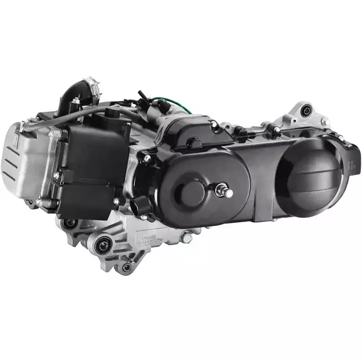 Moottori toimitetaan lähes kokonaisena pakettina: mukana käynnistyspoljin, imukaula, staattori ja variaattorikotelo. Vain muutama liitin ja skootteri on valmis ajoon.