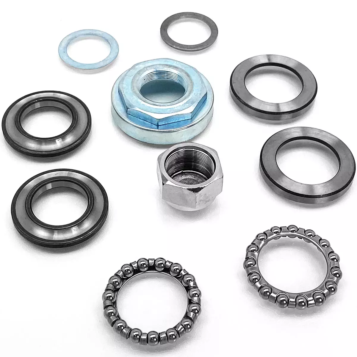 Ohjauspään laakerisarja HD Cafe Cruiser -sähköskootteriin. Kuvanmukainen laakerisarja sopii suoraan alkuperäisten laakereiden tilalle korvaamaan vialliset osat.
