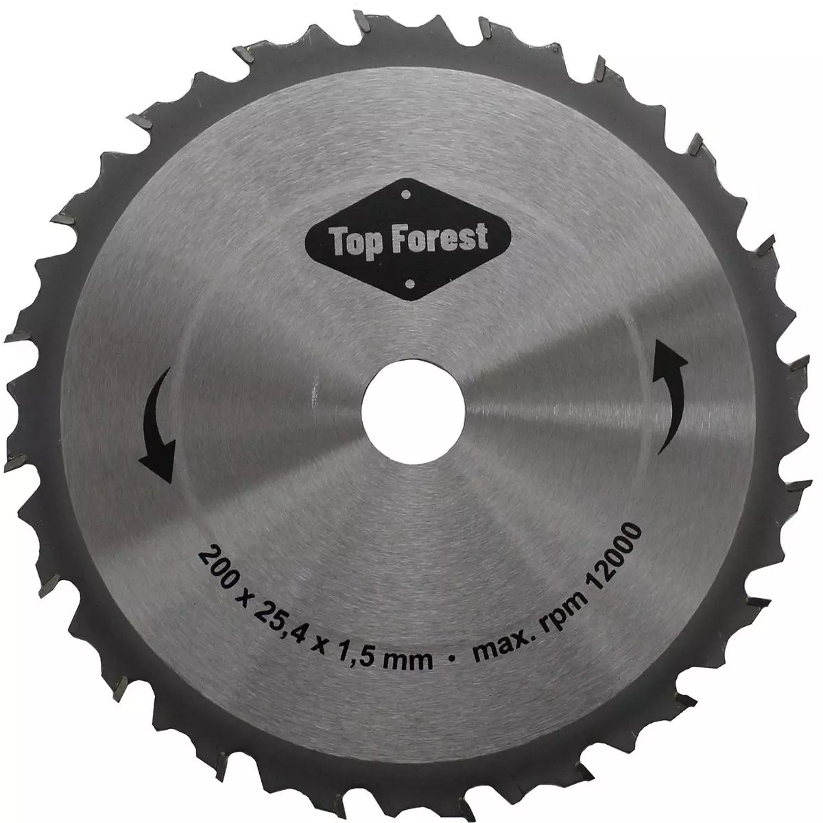 Esiteroitettu raivaussahan kovapalaterä. Terän mitat ovat 200 x 20 x 1,5 mm ja sen maksimi on 12 000 rpm / min.
