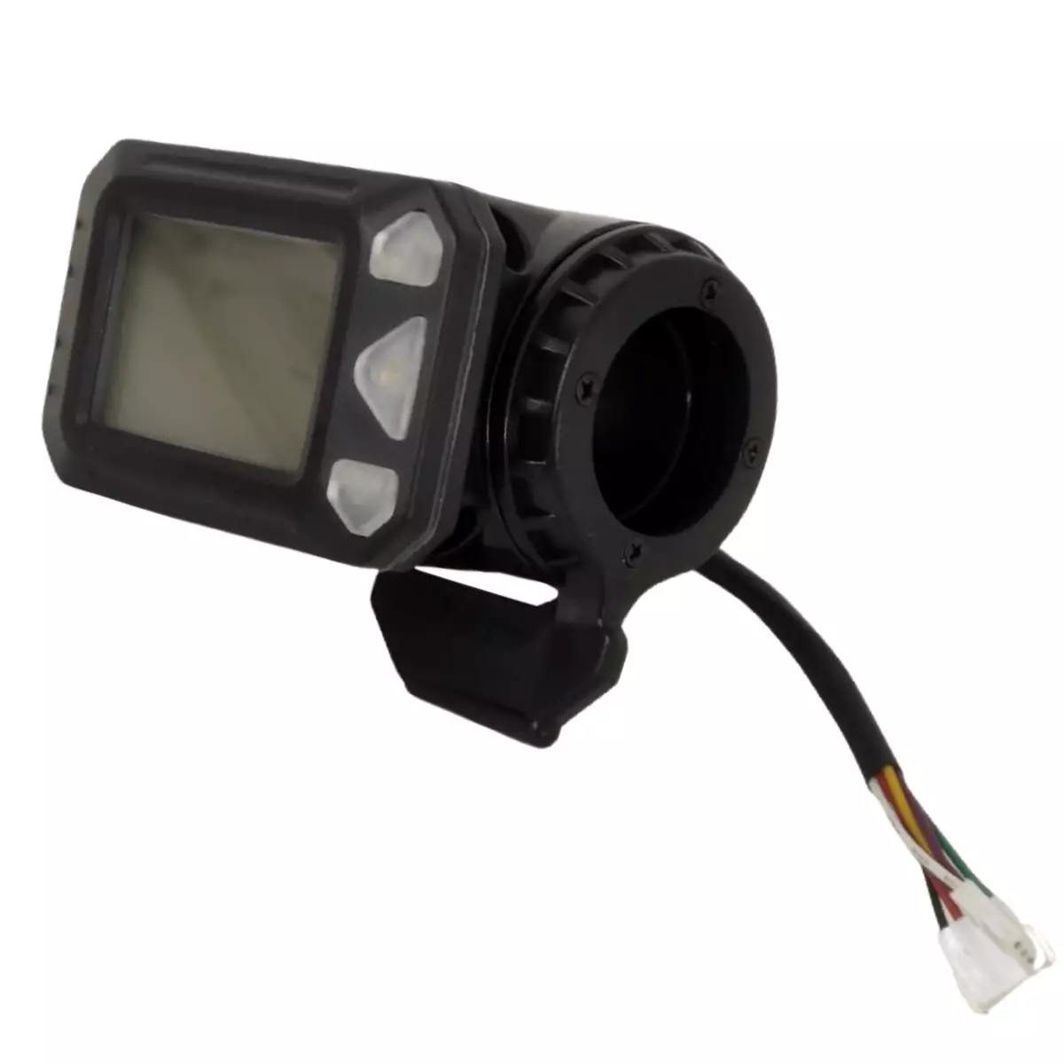 Tämä sähköpotkulaudan näyttö kaasukahvalla yhdistää ajotiedon näytön ja nopeudensäätimen samaan yksikköön. Tarkoitettu 24 V sähköpotkulautoihin, joissa ohjaustangon halkaisija on 22 mm.