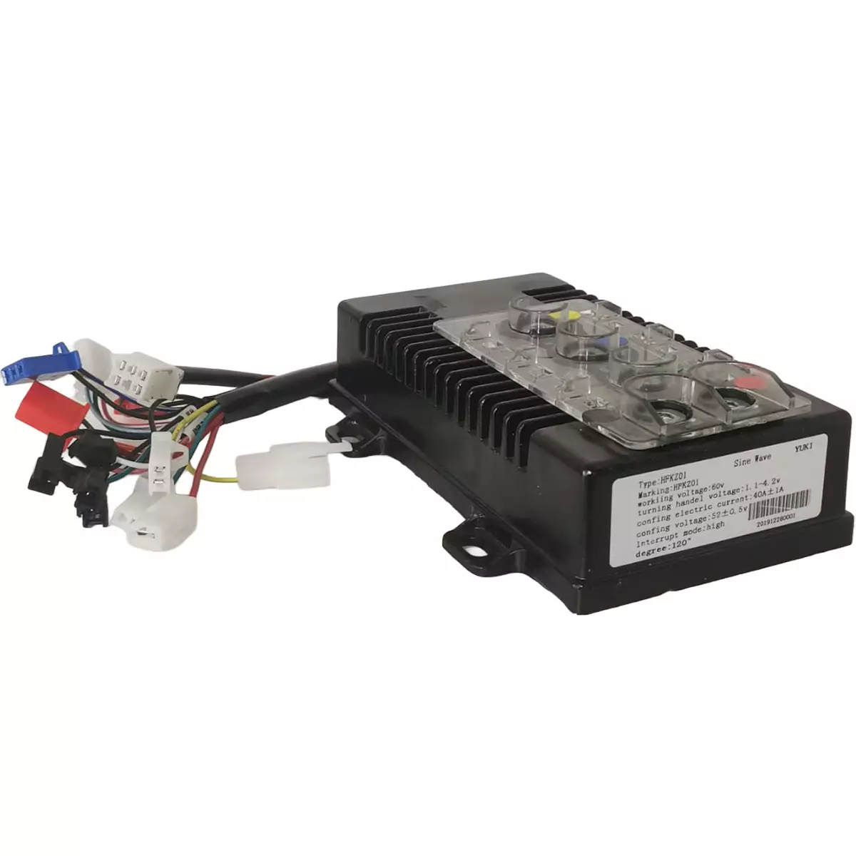 Sähköriksan säädin 60V 40A 2000W varaosaksi ja huoltoon. Mitat 173x94mm, kiinnitys 90x110mm. Tarkista yhteensopivuus ja tilaa.